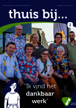 Al ruim 25 jaar krijgen onze huurders het tijdschrift van OFW thuisbezorgd. Met vanaf 2024 een nieuwe insteek. Passend bij ons nieuwe ondernemingsplan ‘Ik geef thuis in Dronten’. Hiervoor deden we rond april van dit jaar een oproep: Bedenk een nieuwe naam. En, dat deden jullie! Heel veel mooie namen hebben wij mogen ontvangen. We zijn ontzettend enthousiast dat jullie tijdschrift voortaan ‘Thuis bij...’ heet!
