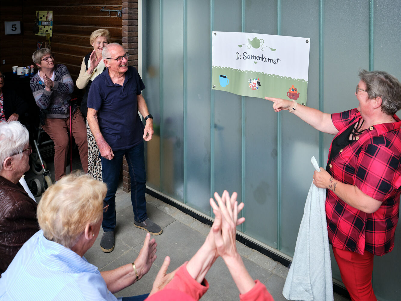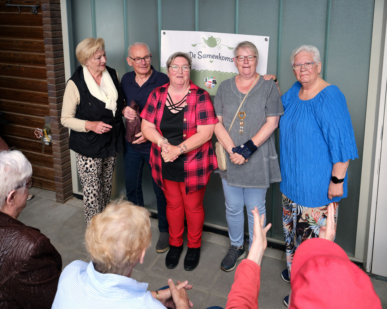 De beheerders van De Samenkomst - Joyce, Ria, Henny en Anneke - zijn ontzettend trots. Samen met OFW en de gemeente Dronten hebben zij een gezellige en uitnodigende plek voor alle bewoners van De Tas weten te creƫren. Dit bijzondere moment werd gevierd met een hapje en een drankje, en alle bewoners waren uitgenodigd om dit heuglijke moment bij te wonen.
